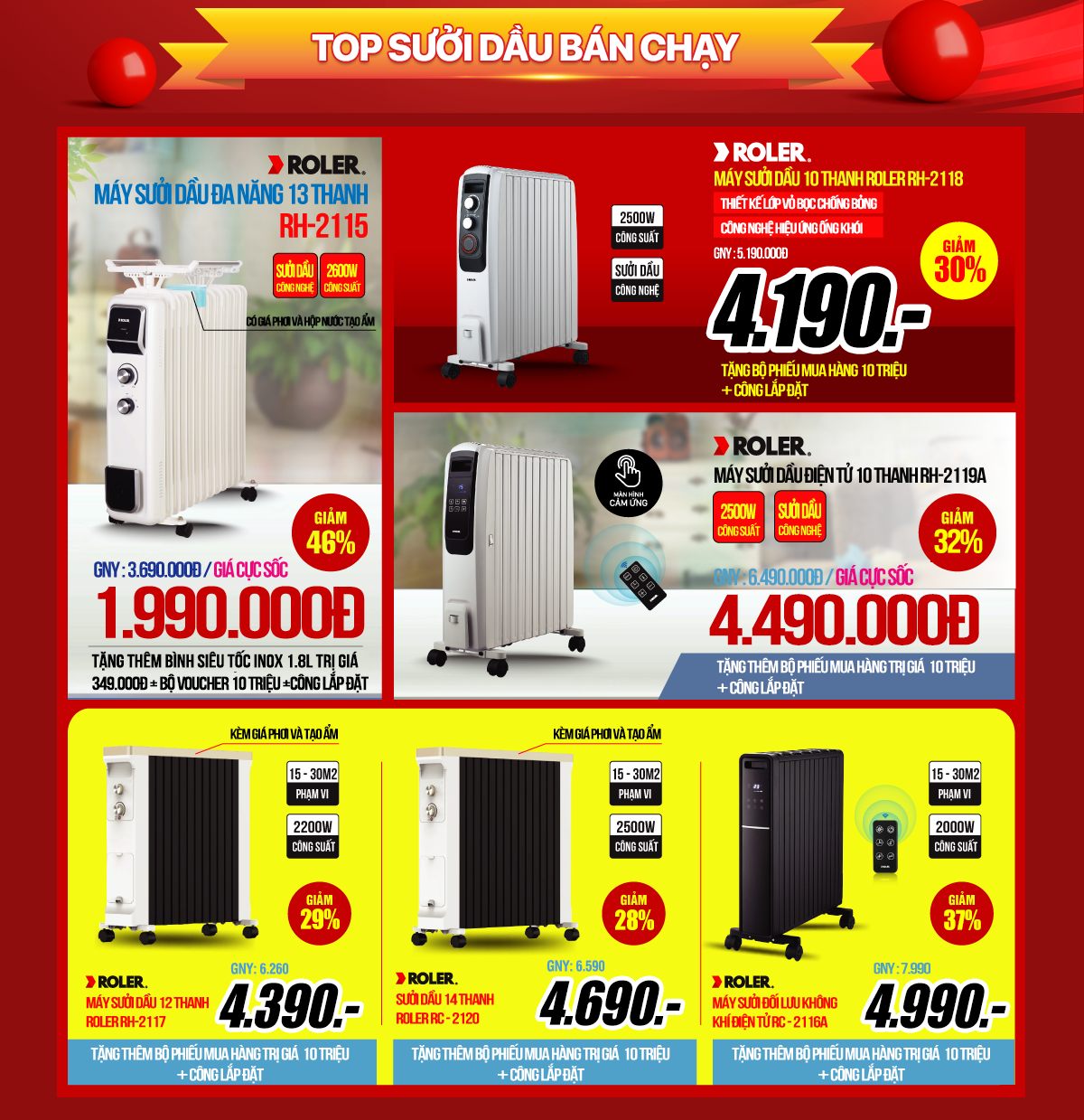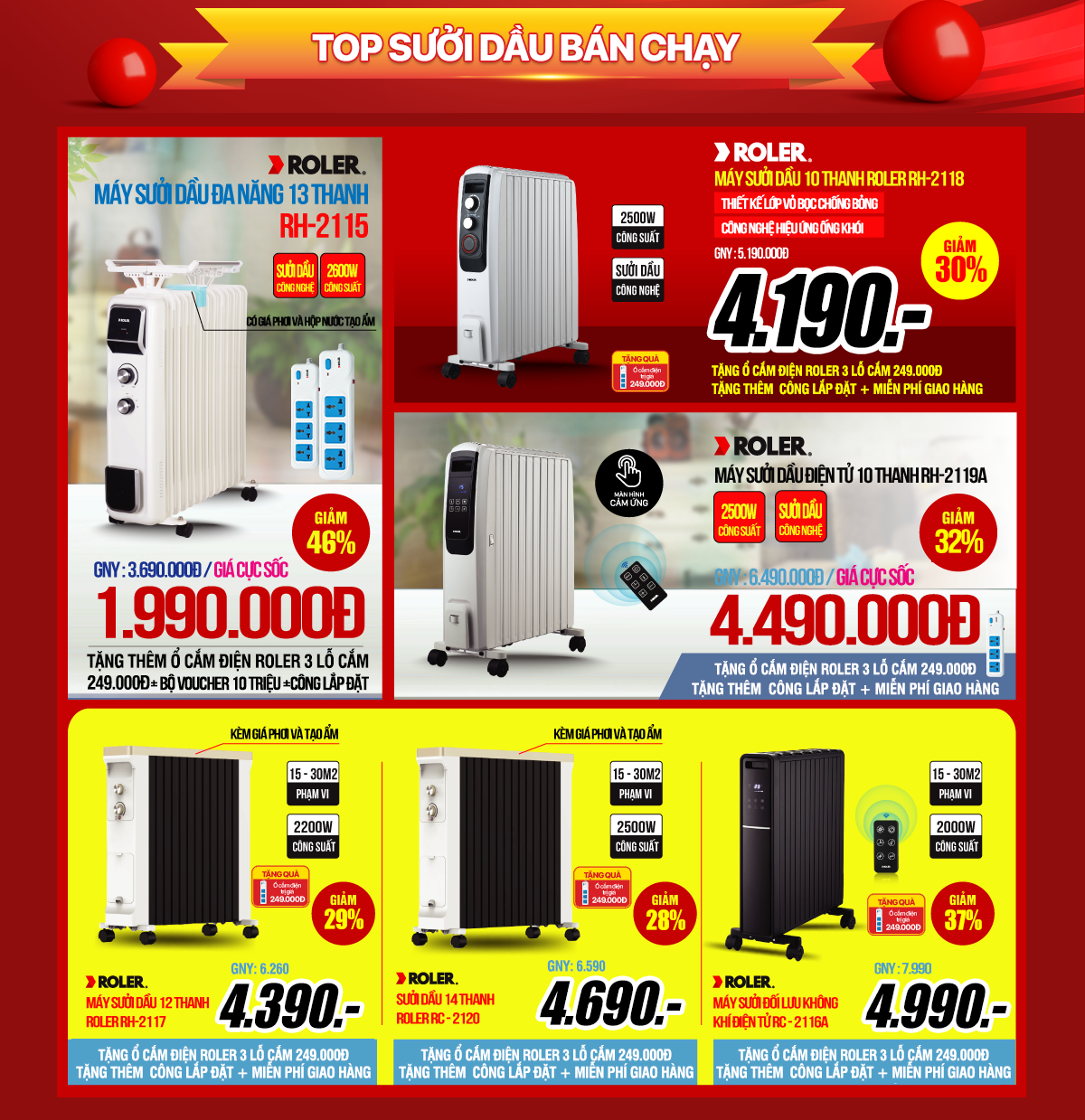 Máy sưởi dầu điện tử 10 thanh Roler RH-2119A (Có điều khiển từ xa)