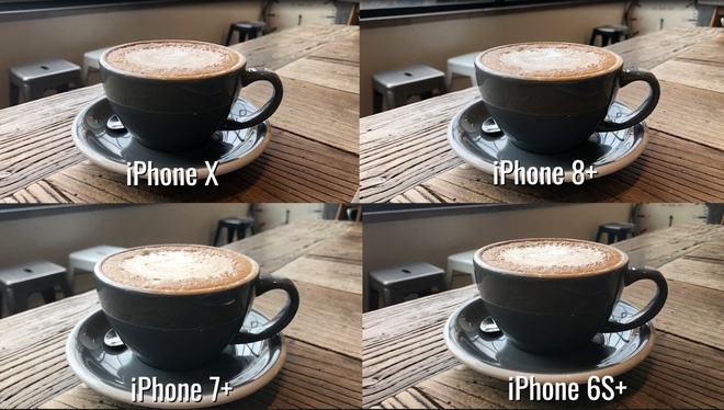 Trong bức ảnh đầu tiên trong bài test, ly cafe latte đặt trên bề mặt gỗ trông khá giống nhau giữa các thiết bị, với một số điểm khác biệt nhẹ khi chụp bằng 6S Plus và 7 Plus. Nhưng những khác biệt này không nói lên điều gì đáng kể trừ việc nếu có ánh sáng lý tưởng thì mọi thiết bị đều có thể tạo ra được những bức ảnh chất lượng.