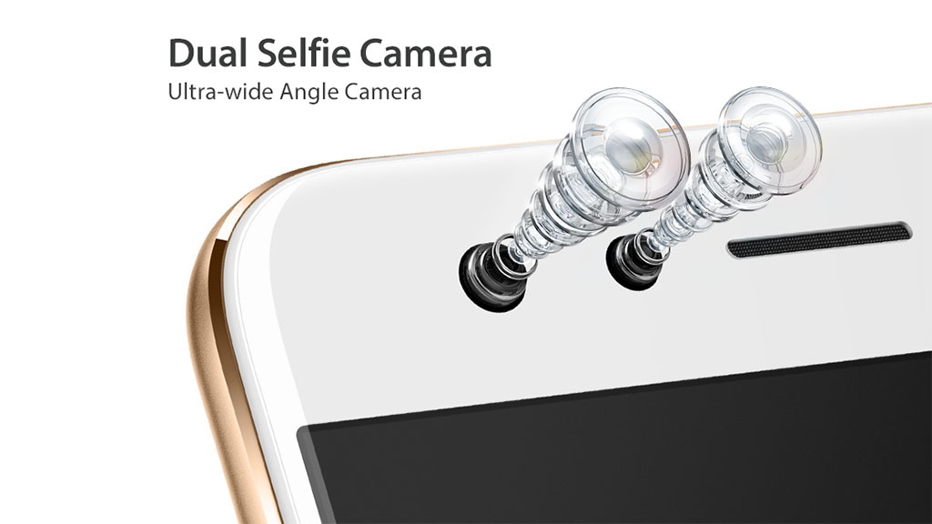 ​OPPO F3 vẫn thừa hưởng những gì tinh tuý và nổi bật nhất từ F3 Plus, là cụm camera kép để chụp ảnh selfie. Trong đó là một camera độ phân giải 16MP có khẩu độ f/2.0 tăng khả năng thu sáng giúp chất lượng hình ảnh "tự sướng" sắc nét, rõ ràng, có chiều sâu, và beautify 4.0 đem đến vẻ đẹp tự nhiên cho người chụp. Cạnh đó là camera 8 MP góc siêu rộng với khả năng thu được gấp đôi khung hình và với 6 lớp thấu kính điều hướng ánh sáng, giảm nhiễu tốt hơn. Đây là giải pháp hoàn hảo cho việc selfie nhóm đông người, hay selfie một mình lấy trọn khung cảnh rộng lớn phía sau.