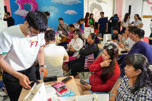Ngay trong ngày mở bán, rất đông những khách hàng đã đến nhận máy. Bạn Nguyễn Hữu Quốc, một khách hàng nhận máy ở FPT Shop chia sẻ: “Tôi dùng điện thoại OPPO F3, vẫn còn tốt, nhưng khi nhìn thấy F7 màu đỏ, tôi đã thích ngay. Máy có màn hình lớn và màu đỏ thì hợp mạng với tôi. Chiếc điện thoại này nhìn rất sang trọng, cấu hình mạnh giải trí tốt hơn”. Có khá nhiều lý do để người dùng nâng cấp hay chọn OPPO F7, chị N.T.T. Vân, người đặt hàng trước nói “mình thích selfie, dù không còn trẻ trung nhưng ai lại không muốn hình lung linh hơn. Nghe nói OPPO F7 có tính năng selfie thông minh, tự cân bằng, tự chỉnh sửa, thậm chí trang điểm cho mình nên đặt mua. Với lại điện thoại này cũng đẹp nữa, mình muốn đẹp thì điện thoại cũng đẹp chứ (cười)”.
