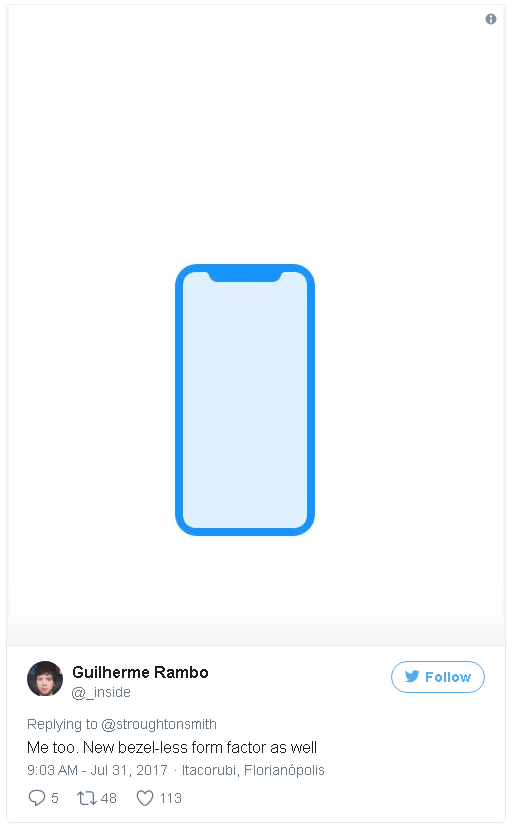Bên trong firmware của HomePod cũng có một đoạn mã xác nhận thiết kế mặt trước của chiếc iPhone 8, được nhà phát triển Guilherme Rambo xác nhận trên trang cá nhân của mình. Thiết kế này khá giống với một số hình ảnh rò rỉ trước đây.