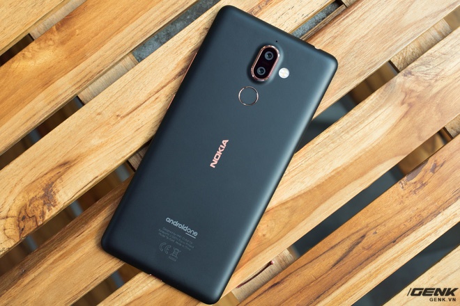 Cụm camera kép được đặt dọc ngay chính giữa với viền cắt bảo vệ màu đồng cùng logo Zeiss góp phần làm tăng sự nổi bật của máy hơn. Cảm biến vân tay phía dưới cũng được trang bị viền cắt tương tự. Logo Nokia chính giữa mặt lưng cũng làm tăng thêm tính thẩm mỹ cũng máy