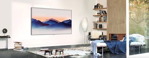 Không chỉ là một vật trang trí nội thất nghệ thuật, nhờ vẻ ngoài mỹ miều, TV QLED còn là một tác phẩm nghệ thuật treo tường, ngay cả khi đã tắt. Với chế độ Ambient Mode (tiết kiệm năng lượng), QLED 2018 có thể nhận diện được màu sắc và hoa văn trên tường. Sau đó, đồng bộ hình nền của TV với hoa văn đó và “ẩn mình” hài hoà vào không gian nội thất của căn phòng.