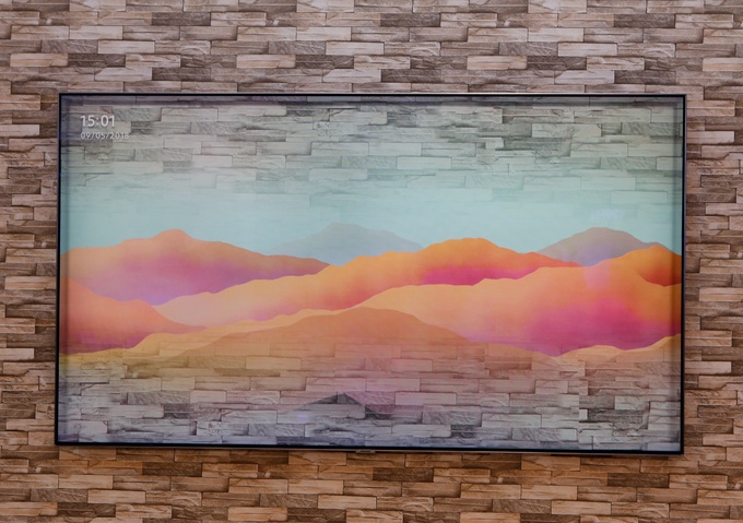 Thiết kế của các mẫu QLED năm nay không nhiều thay đổi, chỉ khác là được bổ sung chế độ Ambient Mode biến TV thành khung tranh, tăng thẩm mĩ cho căn phòng khi TV ở chế độ chờ. Thay vì hiển thị màn hình đen khi không sử dụng như thường thấy, chế độ này sẽ hiện các thông tin có sẵn như giao thông, thời tiết, tin tức... hoặc hình nền mà người dùng thích. Ở chế độ hình nền, TV sẽ tự động đồng bộ với thiết bị di động của người dùng để hiển thị thông tin lên màn hình.