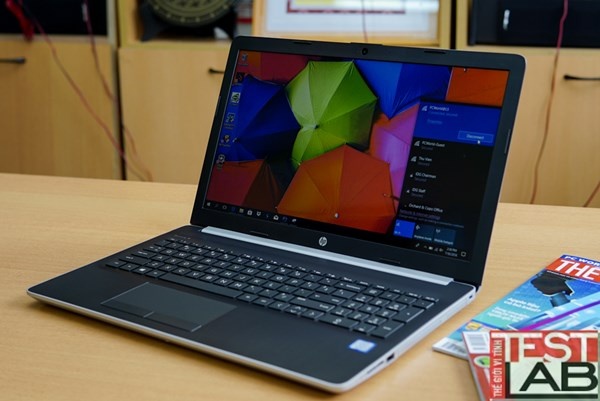 Nhìn chung, với kiểu dáng này, HP 15-da0057TU tuy trông không thực sự lung linh, nhưng vẫn hài hòa với môi trường học tập, sử dụng thay máy để bàn trong gia đình vì máy cũng trang bị màn hình 15,6 inch, cụm bàn phím số tích hợp. Từ thực tế sử dụng, Test Lab nhận thấy HP 15-da0057TU cũng có góc mở màn hình khá thoải mái, góc quan sát theo phương ngang đủ cho nhu cầu học nhóm. Tuy nhiên, Test Lab không đánh giá cao kiểu màn hình gương mà HP trang bị cho mẫu máy tính xách tay này vì chất lượng hình ảnh bị ít nhiều tác động khi sử dụng ngoài trời nắng. May mắn là độ sáng khung hình tối đa vẫn đủ giúp HP 15-da0057TU đối đầu với những môi trường nhiều nguồn sáng trong phòng thử nghiệm.