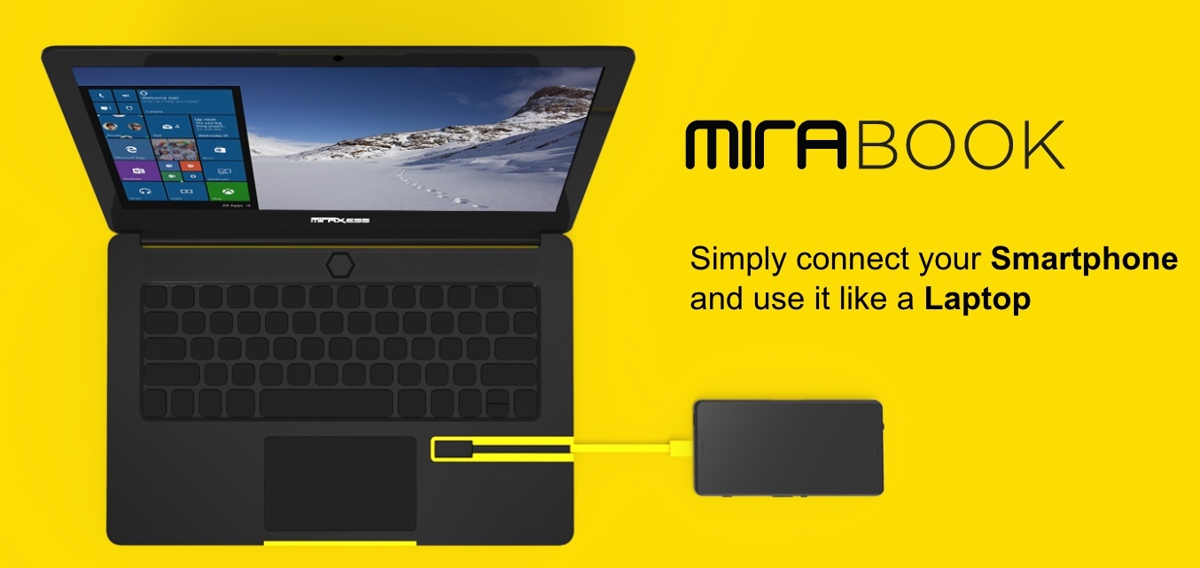 Miraxess là một doanh nghiệp Pháp đang cung cấp các sản phẩm “di động hội tụ” từ năm 2015. Mirabook là sản phẩm mới nhất mà họ hy vọng sẽ cung cấp trải nghiệm như máy tính xách tay, phù hợp với nhiều nền tảng smartphone và PC, bao gồm: