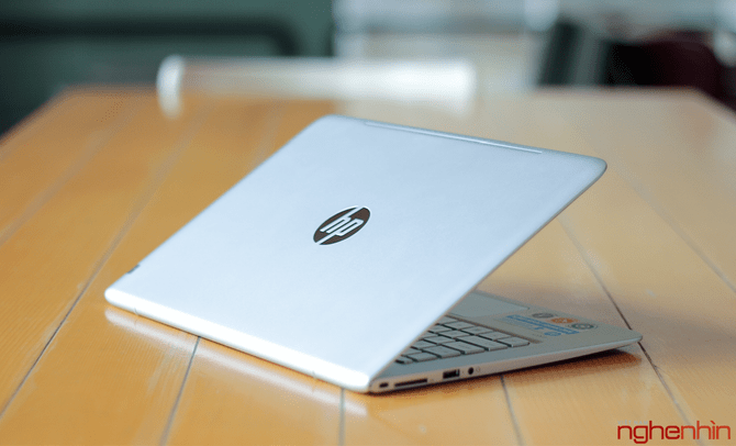 Máy vẫn sở hữu các chi tiết quen thuộc như logo nổi bật ở mặt trên. Hai bên cạnh bố trí đầy đủ các kết nối gồm 3 cổng USB 3.0, HDMI, khe cắm thẻ nhớ SD, jack 3,5mm và cổng nguồn. Điểm khác biệt trong thiết kế của HP Envy 13 là phần bản lề độc đáo giúp nâng gáy máy lên một góc phù hợp mỗi khi mở màn hình, cấu trúc này mang đến trải nghiệm gõ phím và tản nhiệt hiệu quả hơn.