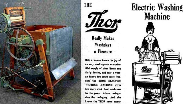 Chiếc máy giặt chạy điện đầu tiên có tên là Thor được giới thiệu năm 1908