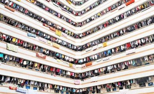 Cảnh phơi đồ theo cách truyền thống ở một khu chung cư.