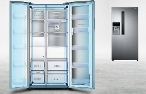 Tủ lạnh có dung tích 575 lít, kiểu dáng Side by Side 2 cửa với bảng điều khiển ngoài tạo cảm giác khá trang nhã. Tính năng đáng chú ý của sản phẩm này là công nghệ 2 dàn lạnh độc lập Twin Cooling Plus giúp ngăn chặn thực phẩm lẫn mùi vào nhau. Động cơ máy nén Inverter cũng giúp cho thiết bị hoạt động tiết kiệm điện năng và bền bỉ hơn. Ngoài ra, còn có khay lấy đá và nước bên ngoài, làm đá tự động, khay đựng Lock N Move kín khí dễ di chuyển. Sản phẩm có giá 36 triệu đồng.