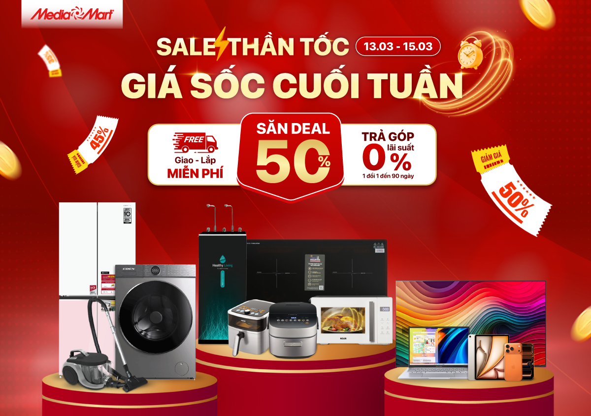 © 2007 Công ty Cổ phần MEDIAMART Việt Nam - ĐCĐK: 29F Hai Bà Trưng. GPĐKKD số: 0102516308 do Sở KHĐT Tp.Hà Nội cấp ngày 15/11/2007, đăng ký thay đổi lần thứ 20 ngày 05/10/2025. Email: hotro@mediamart.com.vn. Điện thoại: 1900 6741. Fax: 0243 933 0766 Website: mediamart.vn / thegioidienmay.com. Chịu trách nhiệm nội dung: Nguyễn Đình Huy. Email: huynd@mediamart.com.vn
