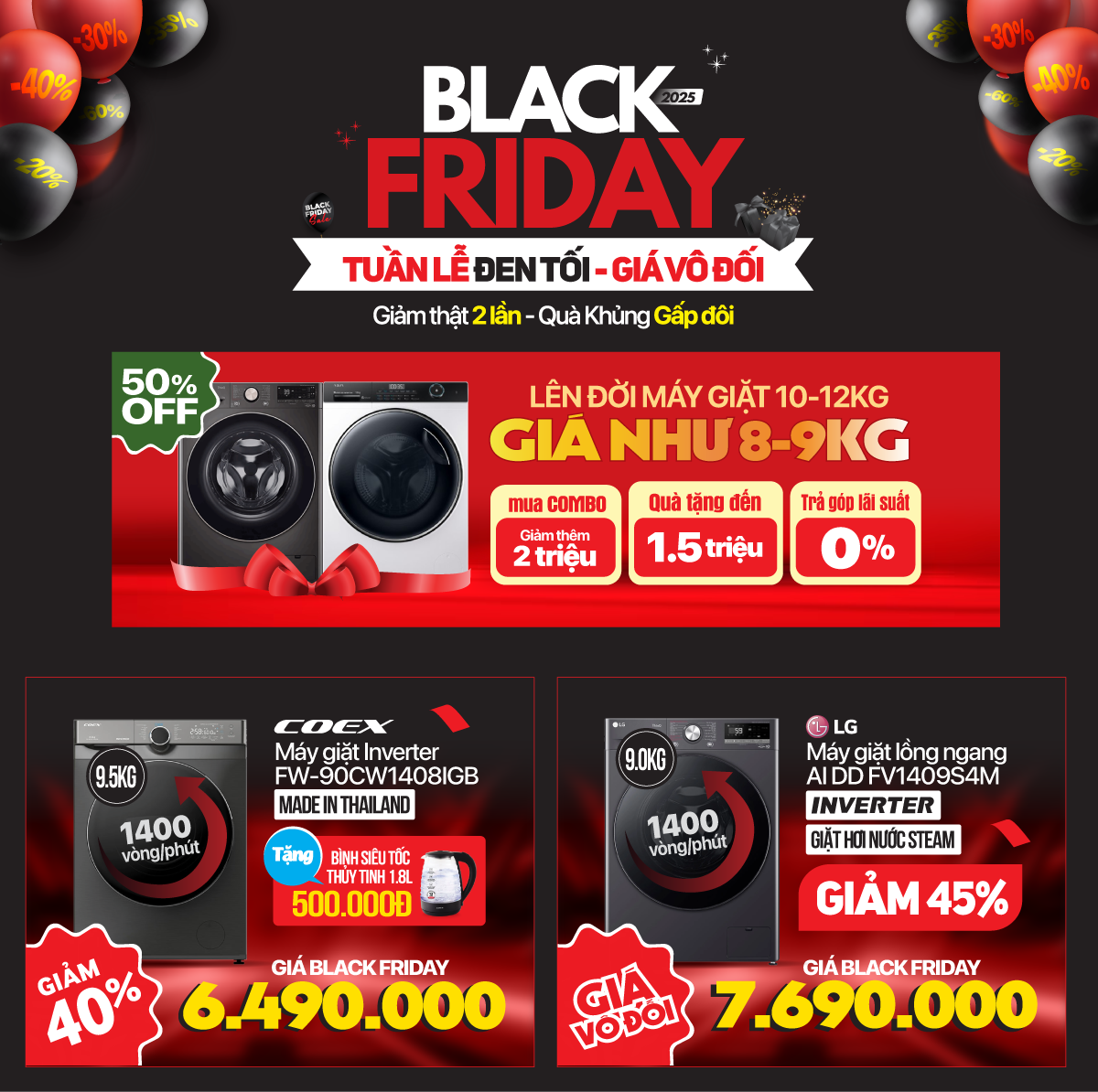 Máy giặt lồng ngang Coex Inverter 9,5kg FW-90CW1408IGB