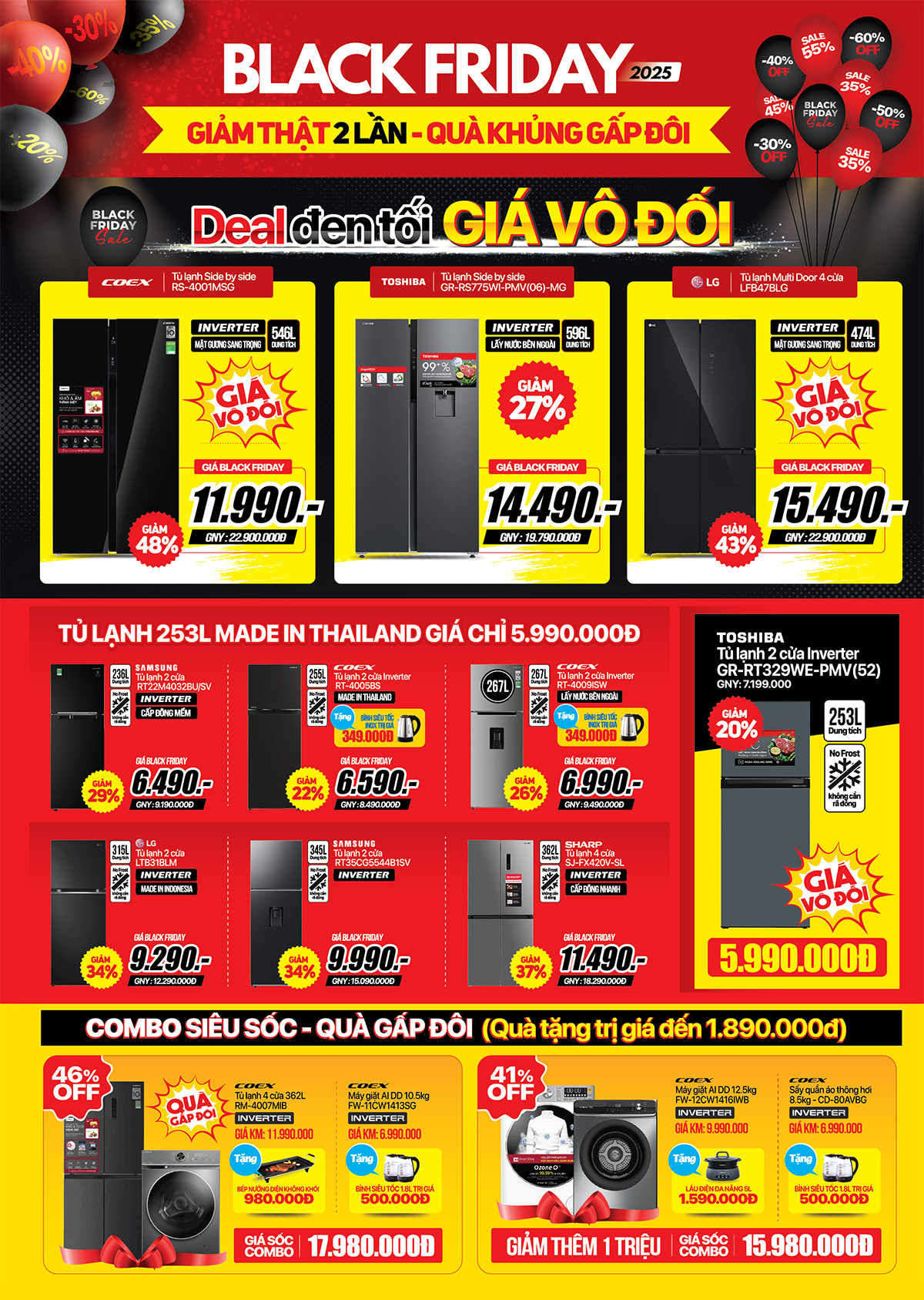 Coex Inverter RT-4011GBB-BS 322L (Gương đen)