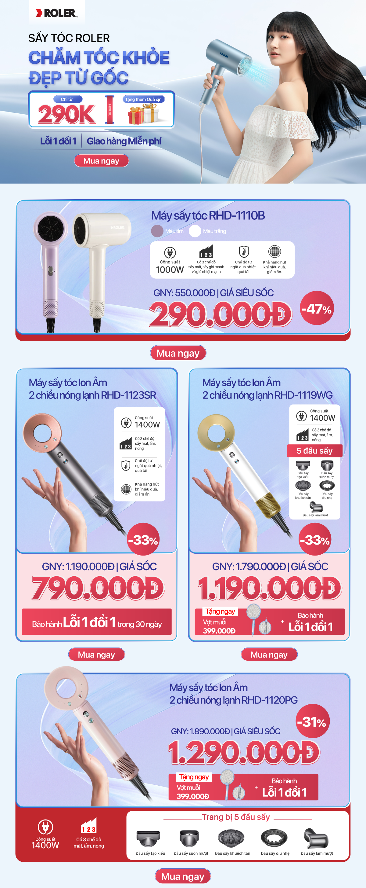 Máy sấy tóc Ion Âm 2 chiều nóng lạnh ROLER RHD-1123SR