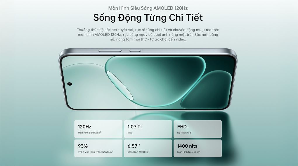 Màn hình có độ sáng tiêu chuẩn 600 nits và đạt tối đa 1400 nits ở chế độ HBM, giúp người dùng nhìn rõ nội dung ngay cả khi sử dụng dưới ánh nắng mạnh. Bên cạnh đó, khả năng hiển thị 1.07 tỷ màu (10-bit) cho phép tái tạo màu sắc sâu, chính xác và sống động hơn, mang lại trải nghiệm xem phim, ảnh và nội dung đa phương tiện trực quan, dễ chịu và giàu chi tiết.
