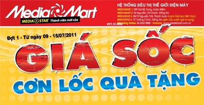 • Giá sốc cơn lốc quà tặng chào mừng Media Mart khai trương siêu thị thứ 9
