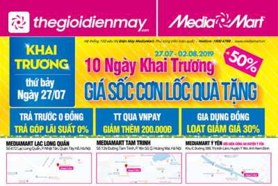 • MediaMart khai trương thêm 04 siêu thị: 10 ngày Giá Sốc, cơn lốc quà tặng