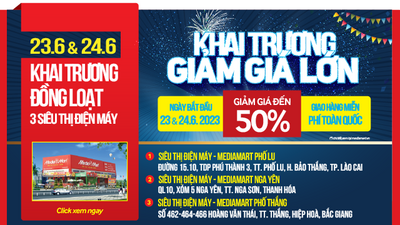 Hệ thống siêu thị điện máy MediaMart tiếp tục khai trương thêm nhiều siêu thị. Theo đó, siêu thị MediaMart Phố Lu sẽ được khai trương vào ngày 23/6; MediaMart Nga Yên, MediaMart Phố Thắng sẽ được khai trương ngày 24/6.