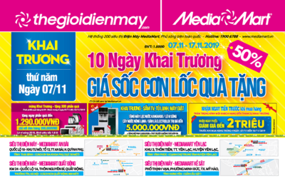 • MediaMart khai trương mới 09 siêu thị, giảm lớn 50% toàn sản phẩm