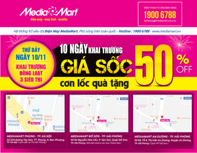 • MediaMart tưng bừng khai trương 02 siêu thị mới, giảm giá đến 50%