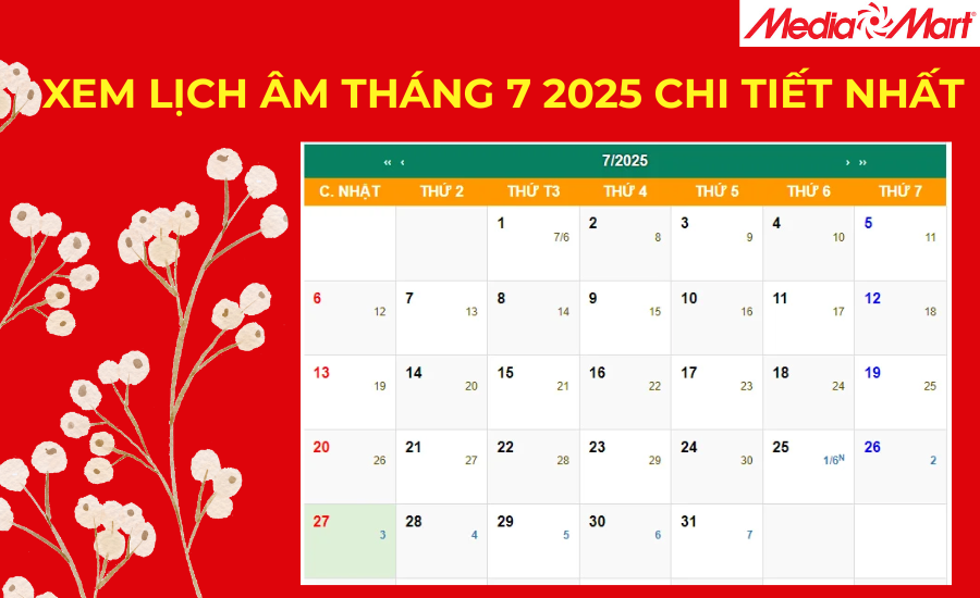 Những thông tin chi tiết nhất về lịch Âm tháng 7 2025, ngày tốt, ngày xấu trong tháng sẽ được MediaMart chia sẻ chi tiết trong bài viết này.