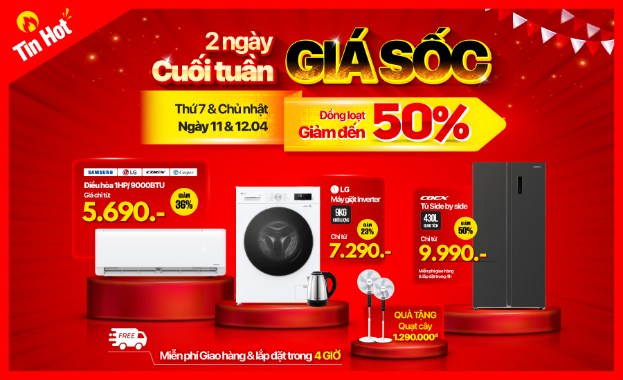 • Cuối tuần giá sốc: Siêu sale điện máy giảm đến 50%
