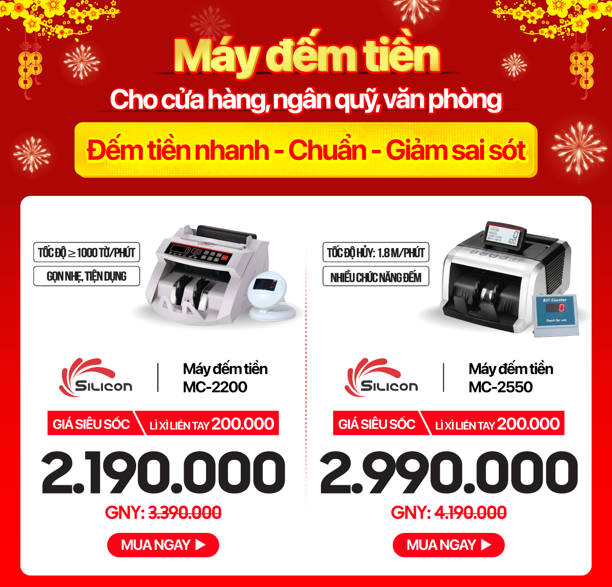 Máy đếm tiền thế hệ mới Silicon MC-2200 (đếm tiền nhanh gọn, tiết kiệm thời gian)