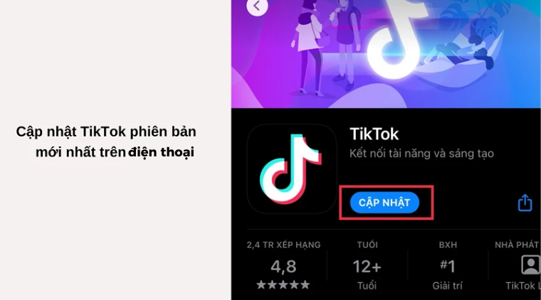 Bước 1: Đầu tiên, bạn cần cập nhật ứng dụng TikTok trên điện thoại lên phiên bản mới nhất thông qua Google Play hoặc App Store. Bạn cũng có thể cập nhật nhanh bằng cách nhấn vào đường link dưới đây: