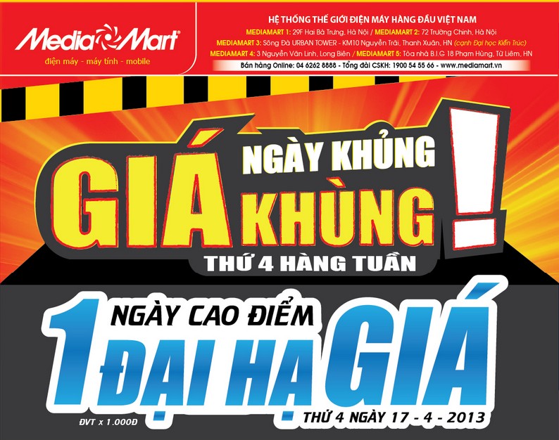 Với tiêu chí bán hàng không lợi nhuận nhằm thiết lập “giá đáy” mới trên thị trường bán lẻ, chuỗi sự kiện “Ngày khủng giá khùng” do Media Mart tổ chức định kỳ hàng tuần trong năm 2012 luôn là chương trình được người tiêu dùng thủ đô quan tâm và đón đợi.