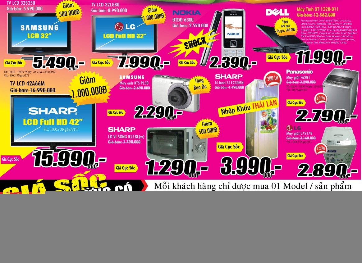Mediamart tiếp tục tạo ra cơn chấn động giá trong 3 ngày vàng cuối tuần này, từ ngày 20/11-22/11/2009 tại 2 địa điểm là 29F Hai Bà Trưng và 56 Nguyễn Chí Thanh Hà Nội.