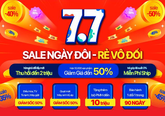 Trong chương trình khuyến mại “7.7 Sale ngày đôi – Rẻ vô đối (-50%)”, hàng loạt các sản phẩm gia dụng như quạt mát, quạt điều hòa, máy xay đa năng nồi cơm điện,… cũng được sale sập sàn với mức giá rẻ bất ngờ.