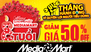 Đặc biệt, đợt 3 Tháng khuyến mại mừng sinh nhật MediaMart diễn ra từ 19/3 đến 25/3 , Hệ thế giới điện máy Media Mart tiếp tục sập giá hàng ngàn sản phẩm điện máy – máy tính – mobile mang lại cơ hội mua sắm các sản phẩm chính hãng với giá rẻ chưa từng có.