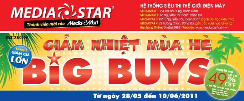 Chương trình diễn ra tại 04 đại siêu thị: Media Mart 1 (29F Hai Bà Trưng), Media Mart 2 (56 Nguyễn Chí Thanh), Media Star 3 (Km10 Nguyễn Trãi, Thanh Xuân) và Media Star 4 (72 Trường Chinh).