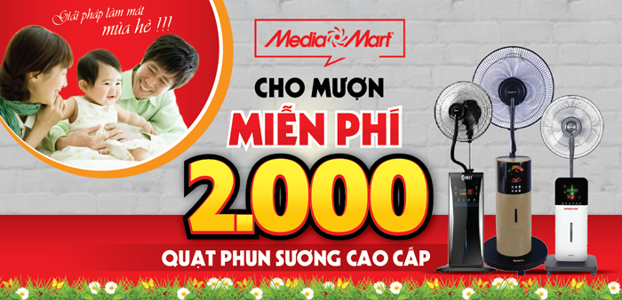 - Toàn bộ sản phẩm công ty cổ phần Media Mart cho mượn đều là sản phẩm mới 100%. Sau khi kết thúc chương trình, để khách hàng không mua phải sản phẩm đã qua sử dụng, Công ty cổ phần Media Mart sẽ bán thanh lý 2.000 QUẠT PHUN SƯƠNG nói trên theo giá thanh lý.