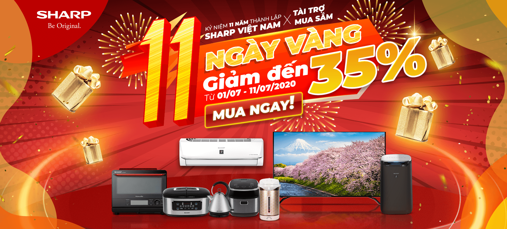 11 năm là hành trình Sharp Việt Nam không ngừng nổ lực mang đến cho người tiêu dùng Việt Nam thật nhiều sản phẩm gia dụng chất lượng vượt trội, công nghệ hiện đại. Mừng sinh nhật năm nay, Sharp Việt Nam tài trợ bạn mua sắm với mức giá giảm 10% - 35% trong chương trình “MUA HÀNG NHẬT, GIÁ CỰC SỐC”.