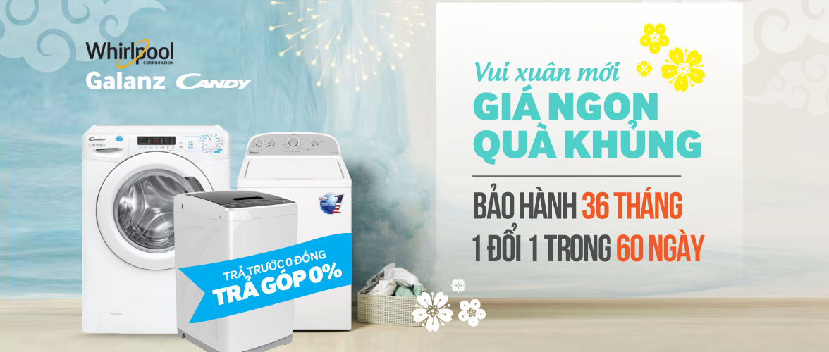 Tặng 1 năm bảo hành đối với sản phẩm máy giặt thương hiệu Candy, Galanz...