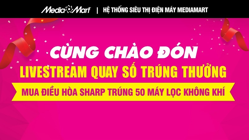 MediaMart trân trọng thông báo chương trình quay số trúng thưởng “MUA ĐIỀU HÒA SHARP - TRÚNG 50 MÁY LỌC KHÔNG KHÍ” sẽ diễn ra vào 10h00 ngày 03/5/2019 tại Công ty CP MediaMart Việt Nam - Tầng 7 Tòa nhà MediaMart - Số 29F Hai Bà Trưng, Hoàn Kiếm, Hà Nội, hoặc xem trực tiếp trên fanpage :fb/DienmayMediaMart.