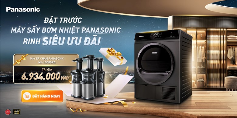 Trong thời gian diễn ra chương trình, khi khách hàng đặt mua sản phẩm Máy sấy bơm nhiệt Panasonic mới tại hệ thống Mediamart sẽ được hưởng các ưu đãi về giá cùng quà tặng Máy ép chậm Panasonic PAVH-MJ-L500SRA trị giá 6,934,000 VNĐ.