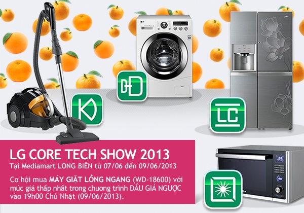 Xem công nghệ đóng vai trò cốt lõi, mong muốn người tiêu dùng trải nghiệm những công nghệ tiên tiến nhất, từ ngày 7/6 đến hết 9/6, Media Mart phối hợp cùng LG Việt Nam tổ chức sự kiện Core Tech show 2013 tại Media Mart Long Biên.