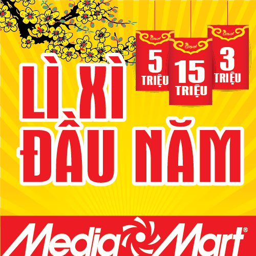 Đặc biệt, từ 5/2 (tức mùng 6 tết) đến hết 14/2, Media Mart tặng tiền lì xì trực tiếp cho hàng nghìn TV LED, smartphone, laptop, máy ảnh, máy tính bảng. nồi cơm điện,lò vi sóng… của các thương hiệu nổi tiếng và quen thuộc như: Sony, Samsung, LG, Toshiba, Sharp, Panasonic, Electrolux, Niokia, Acer,…