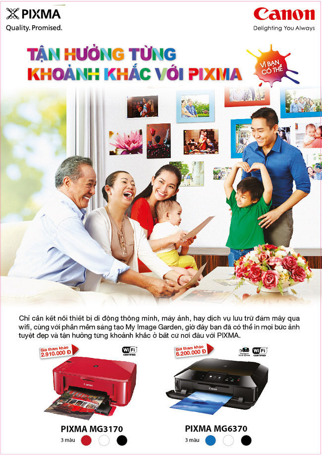 Theo đó trong thời gian này khi mua máy in Pixma bất kỳ khách hàng được tặng ngay Album cùng giấy in ảnh. Riêng với model MG3170 và MG6370, khách hàng còn được tặng thêm gối Pixma thời trang.