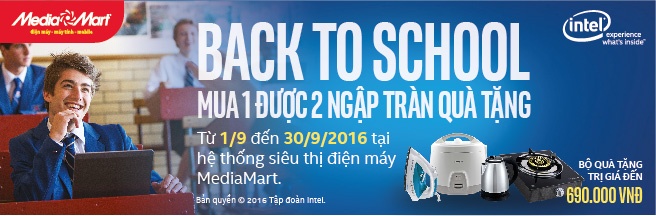 Nhân dịp khai trường - chào đón tân sinh viên 2016, Hệ thống siêu thị điện máy Media Mart phối hợp cùng Intel tung ra gói quà tặng hấp dẫn dành dòng máy tính 2 trong 1 nói riêng và dòng máy tính thường nói chung sử dụng chip Intel