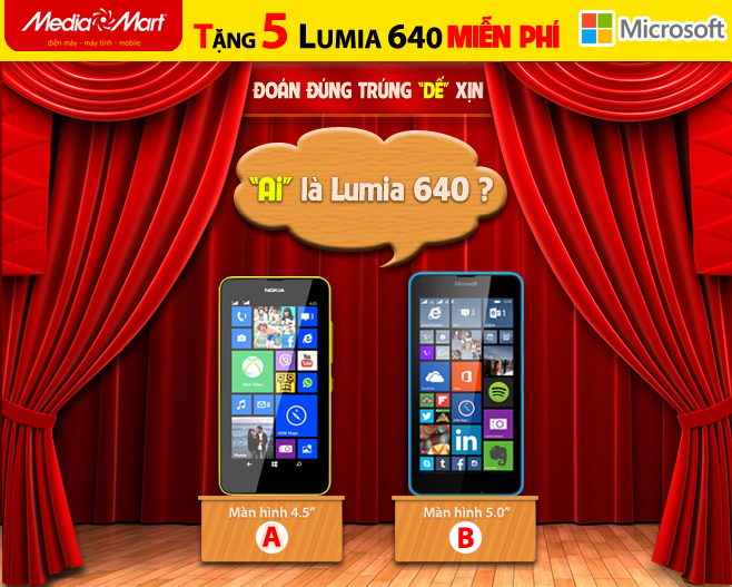 Chào mừng các bạn đến với game "ĐOÁN ĐÚNG TRÚNG DỄ XỊN - LUMIA 640 TẠI MEDIAMART. Theo đó Từ 7/4 đến 16/4/2014 Sở hữu ngay 5 chiếc smarphone Lumia 640 mới nhất của Microsoft MIỄN PHÍ ? Thật khó tin nhưng chỉ với 3 bước cực đơn giản Like, Share, Comment tại MediaMart Fanpage bạn sẽ có cơ hội trúng ngay dế khủng chip lõi tứ Lumia 640 "Xịn", chụp hình cực đẹp với Camera đỉnh. Còn chần chừ gì nữa, hãy cùng “Săn” Điện thoại Lumia 640 ngay từ bây giờ.