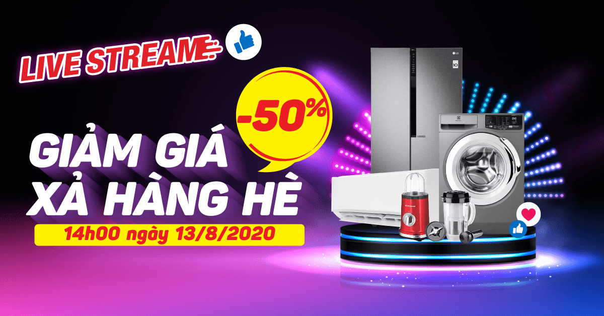 Trong buổi phát sóng hôm nay lúc 14h00, ngày 13/08 quý khách hàng sẽ được mua các sản phẩm Máy giặt, Quạt điều hòa,Tủ lạnh, Máy ép chậm, ….với mức giảm giá cực "Sốc" cùng nhiều phần quà hấp dẫn khác khi quý khách hàng đặt mua các sản phẩm có trong livestream "Giảm giá xả hàng hè, giảm đến 50%".