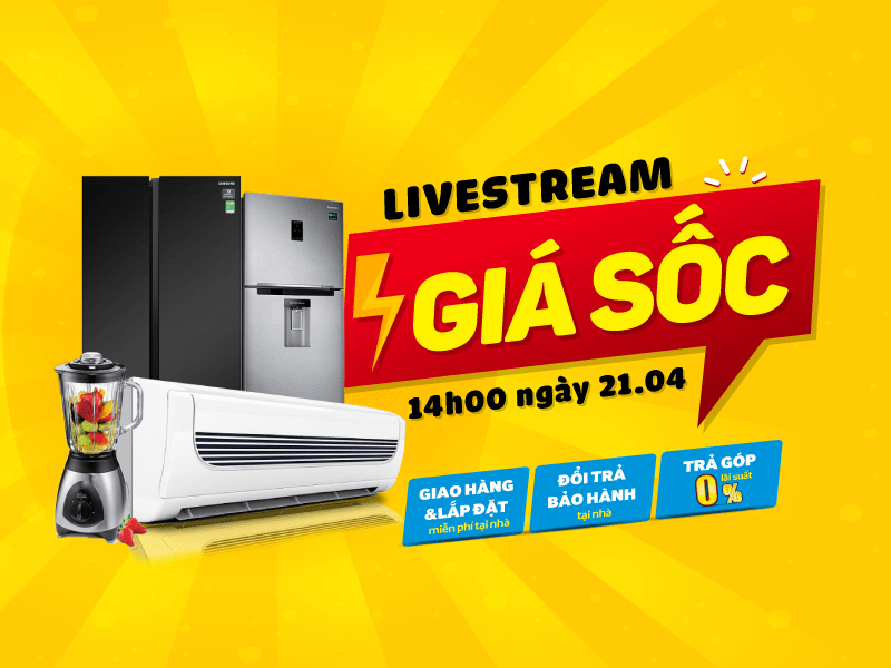 Trong buổi phát sóng gần nhất vào 14h00 Thứ 3, ngày 21/4, khách hàng tham gia Livestream sẽ được mua sắm các sản phẩm ĐIỀU HÒA, TỦ LẠNH, THIẾT BỊ GIA ĐÌNH GIÚP GIẢI NHIỆT MÙA HÈ… với giá SỐC giảm đến 40% so với giá niêm yết.