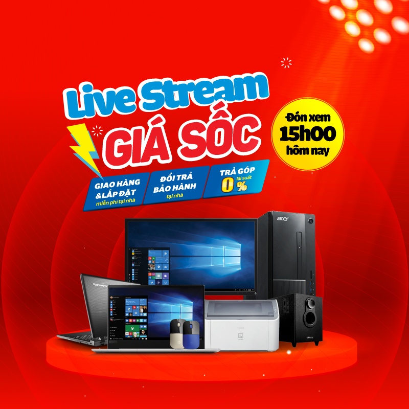 Trong buổi phát sóng gần nhất vào 15h00 Thứ 4, ngày 15/4, khách hàng tham gia Livestream sẽ được mua sắm các sản phẩm laptop, PC+ màn hình, tai nghe, loa, webcam… với giá SỐC giảm đến 40% so với giá niêm yết.