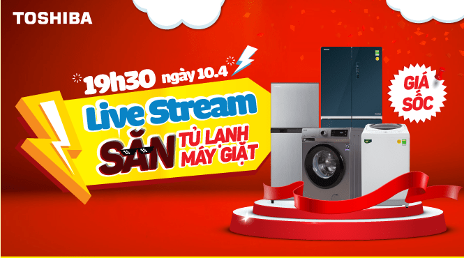 Trong buổi phát sóng gần nhất vào 19h30 Thứ 6, ngày 10/4, khách hàng tham gia Livestream sẽ được mua sắm các sản phẩm tủ lạnh, máy giặt đến từ thương hiệu Toshiba… với giá SỐC giảm đến 40% so với giá niêm yết.