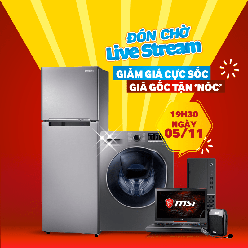 Trong buổi phát sóng tối hôm nay lúc 19h30, ngày 05/11 quý khách hàng sẽ được mua các mặt hàng như: Tủ lạnh, Máy giặt, Loa máy tính, Máy trợ giảng….với mức giảm giá cực "Sốc" cùng nhiều phần quà hấp dẫn khác khi quý khách hàng đặt mua các sản phẩm có trong livestream.