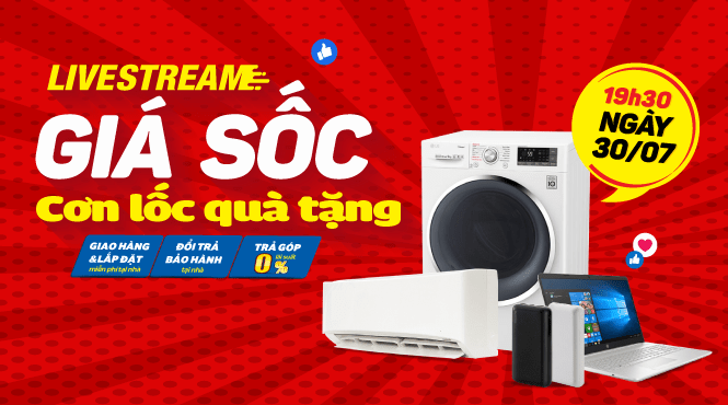 Trong buổi phát sóng hôm nay lúc 19h30, ngày 30/07 quý khách hàng sẽ được mua các sản phẩm Điều hòa, Máy giặt, Laptop, Loa Soundbar….với mức giảm giá cực "Sốc" cùng nhiều phần quà hấp dẫn khác khi quý khách hàng đặt mua các sản phẩm có trong livestream.