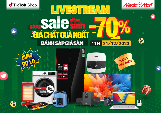 Tin nóng đây! Nhanh tay săn sale Giáng sinh cùng MediaMart trong Livestream Bán hàng GIÁ SỐC “Siêu sale Giáng sinh – Giá chất, quà ngất -70%” tại https://www.tiktok.com/@mediamart.official?lang=vi-VN. Cơ hội có 1-0-2 để quý khách hàng săn sale khủng các sản phẩm điện tử, gia dụng, công nghệ với mức giá rẻ chưa từng có. Còn gì tuyệt vời hơn !